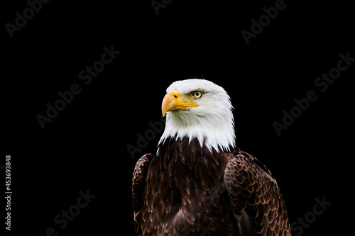 © Torval Mork, Fototapeta premium Bald eagle in portrait against a black background