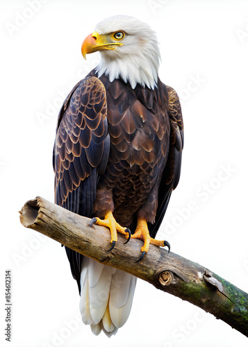 © KingKongThePitbull, Naklejka premium Bald eagle on branch, on isolated white background, Clipping path