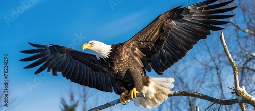 Obraz premium Bald Eagle Perched Tree Fly Landing Branch Spread Wings