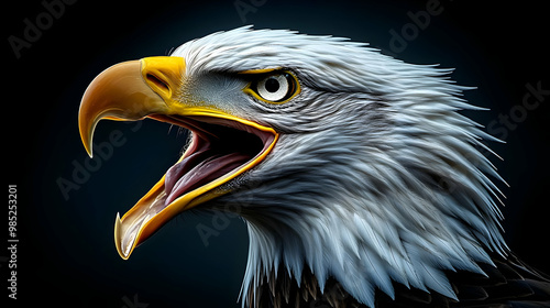 © Siasart Stock, Obraz premium Bald Eagle Portrait with Open Beak Illustration