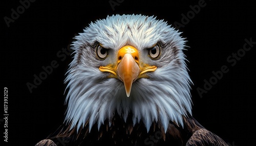 Obraz premium Bald eagle portrait with striking details, set against a black background in...