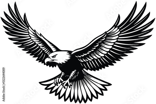 Fototapeta premium Bald Eagle Silhouette vector style lack and white flat vector art of a bald eagle