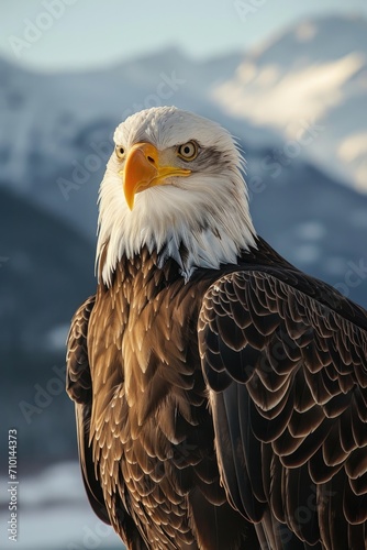 © BrandwayArt, Obraz premium Bald Eagle Soaring Above Majestic Mountain