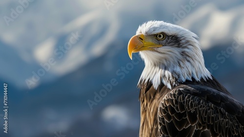 © BrandwayArt, Obraz premium Bald Eagle Soaring Above Majestic Mountain