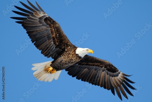 © Azadart, Naklejka premium Bald eagle soaring gracefully against a clear blue sky during a sunny afternoon