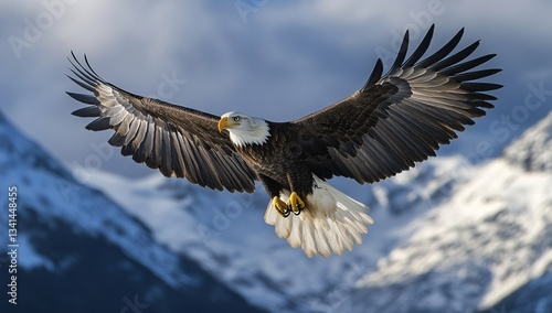 © Zue, Obraz premium Bald eagle soaring gracefully against a mountain