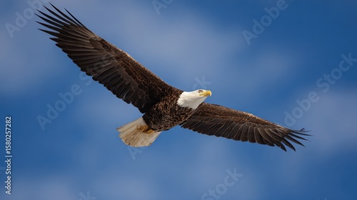 © GONDREK, Naklejka premium Bald eagle soaring in a clear blue sky