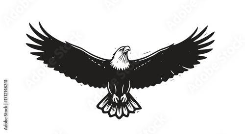 Obraz premium Bald eagle soaring in air monochrome illustration. Isolated, vector of eagle...