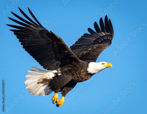 © Andri, Obraz premium Bald eagle soaring in clear blue sky