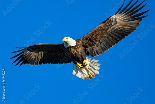 Fototapeta premium Bald Eagle Soaring in Clear Blue Sky