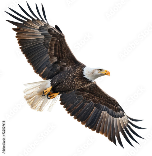 © Mr. Stocker, Fototapeta premium Bald eagle soaring in clear blue sky, cut out - stock png.