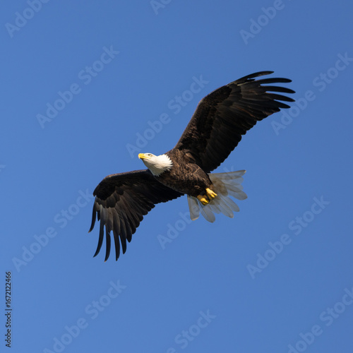 Obraz premium Bald Eagle Soaring in the Blue Sky