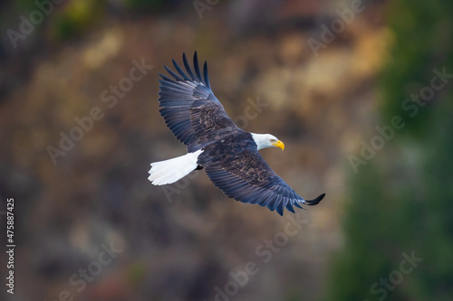 Obraz premium Bald eagle soaring in the trees