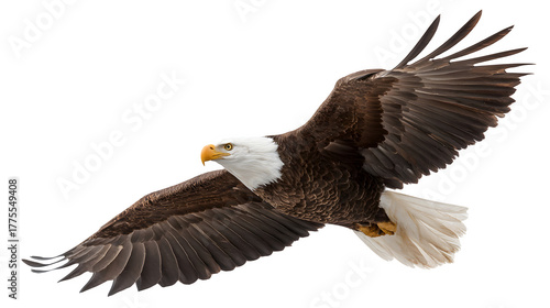 Fototapeta premium bald eagle soaring majestically, wings outstretched, isolated on white...