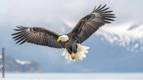 Naklejka premium Bald eagle soaring over Alaska Bay near Homer