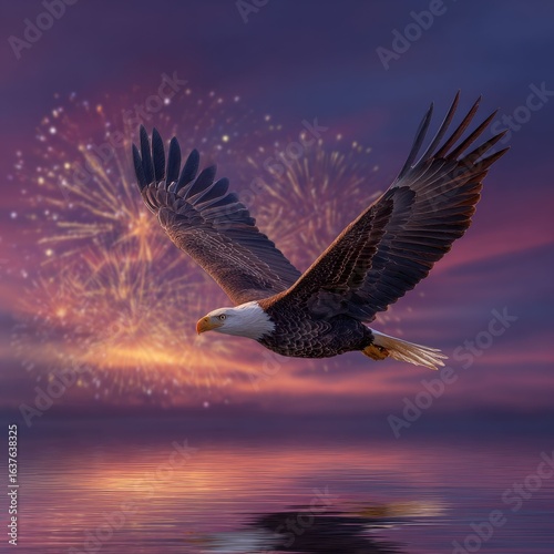 © Pech, Obraz premium Bald eagle soaring over fireworks-lit sky
