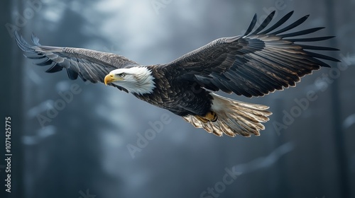 © KADER, Fototapeta premium Bald Eagle Soaring Over Mountains – Pacific Northwest Wildlife Photography