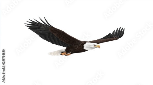 © wiwat apisithpinyo, Obraz premium Bald Eagle Soaring Through Clear Blue Sky Showing Majestic Freedom and Graceful Power