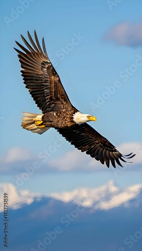 © Tanya, Naklejka premium bald eagle soaring under bright sun in blue sky