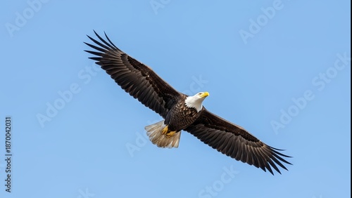 © Nata, Fototapeta premium Bald Eagle soaring with widespread wings against a clear blue sky