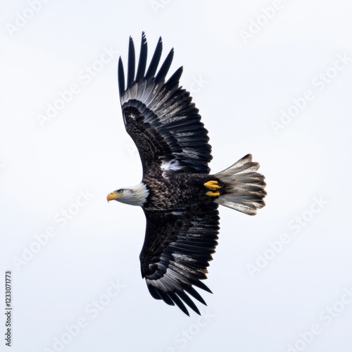 Obraz premium bald eagle soaring with wings spread against a white sky