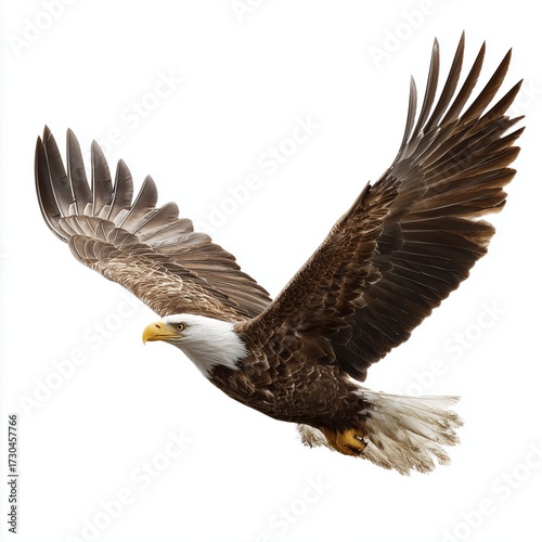 Obraz premium Bald eagle soaring with wings spread, isolated, white background cut out png