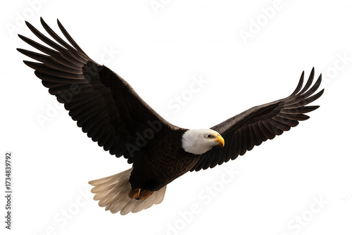Fototapeta premium Bald eagle spreading wings flying, symbolizing freedom, patriotism, and...