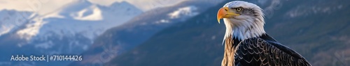 © BrandwayArt, Fototapeta premium Bald Eagle Standing in Front of Mountain
