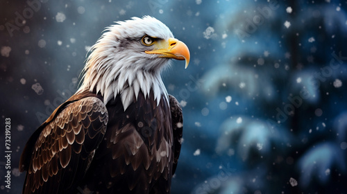 © Professional, Obraz premium Bald Eagle Standing in Snow with Falling Snowflakes