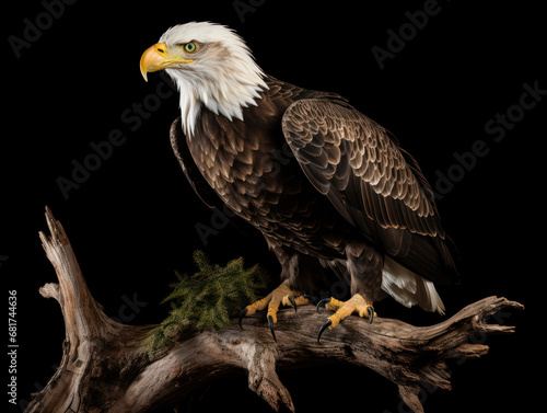 © Vig, Obraz premium Bald Eagle Studio Shot Isolated on Clear Black Background, Generative AI
