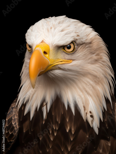 © Vig, Obraz premium Bald Eagle Studio Shot Isolated on Clear Black Background, Generative AI