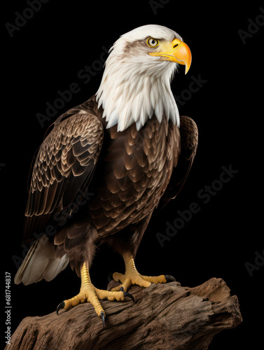 © Vig, Obraz premium Bald Eagle Studio Shot Isolated on Clear Black Background, Generative AI