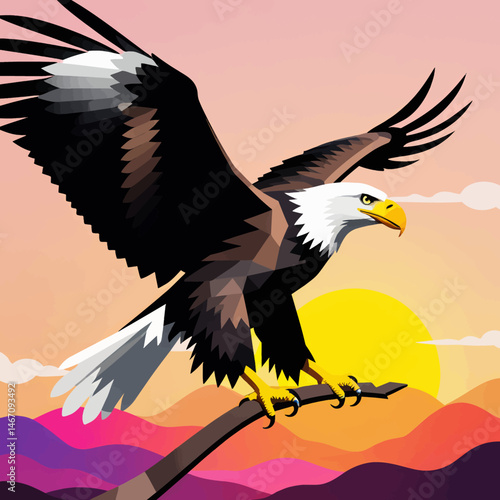 Obraz premium Bald-Eagle-Sunset-Graphic-American-Bird-of-Prey-Illustration