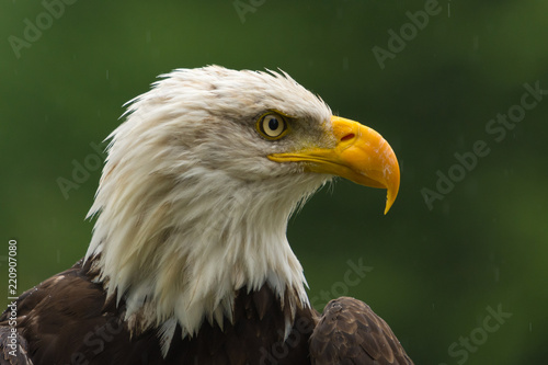© Manuel Lacoste, Obraz premium Bald eagle under the rain looking around for a meal