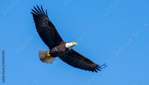 © Meilan Photography, Obraz premium Bald Eagle with Open Wings Flying in Blue Sky for Premium Bird Object and Wildlife Concept