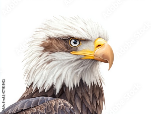 Fototapeta premium Bald eagle with striking features, white isolate background.