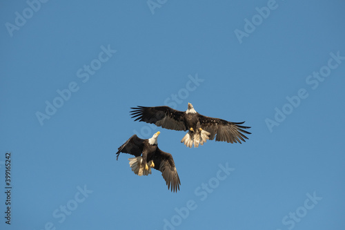 © Patou, Obraz premium 2 bald eagles above in the blue sky