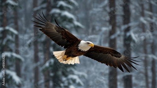 © Karla, Fototapeta premium Bald Eagles Soaring Over Snow
