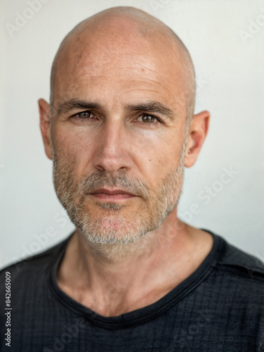 © Vladimir, Obraz premium Bald man with a bright personality. Stylish bald-headed person on white background