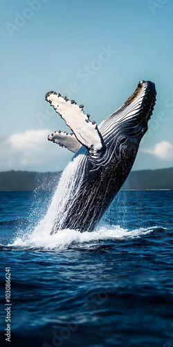© CarlosEduardo, Fototapeta premium Baleia saltando no oceano