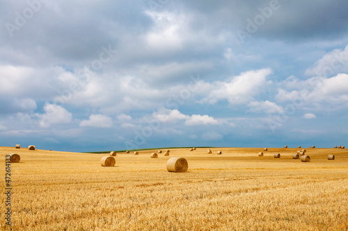 © edojob, Fototapeta premium bales of dry straw in the field after harvest
