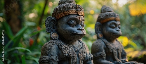 Obraz premium Bali Statues in Monkey Forest Surrounded by Lush Greenery Capturing Cultural...