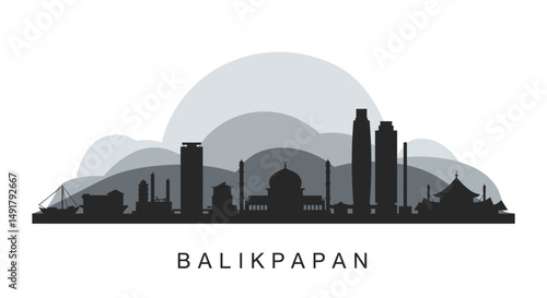 Obraz premium Balikpapan Cityscape Silhouette with Indonesia Skyline.