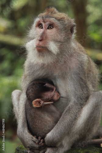 Obraz premium Balinese monkey with baby