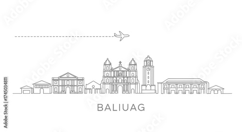 © godsfavoritearts, Obraz premium Baliuag Skyline with Airplane Flying Overhead