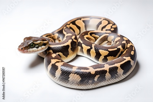 © Shabana, Fototapeta premium Ball python snake on white background, AI Generated