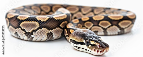 Obraz premium Ball python snake on white background, studio shot. Exotic reptile, wildlife and pet concept