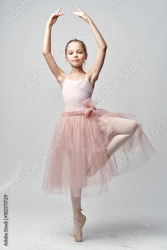 © SHOTPRIME STUDIO, Naklejka premium ballerina in the rack, child, gray background
