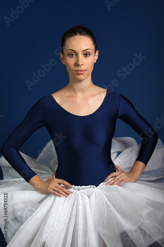 © aarstudio, Fototapeta premium Ballerina on blue background