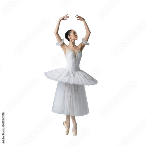 © Camila, Naklejka premium Ballerina performing ballet dance in white tutu dress graceful pose professional dancer artistic expression on transparent background